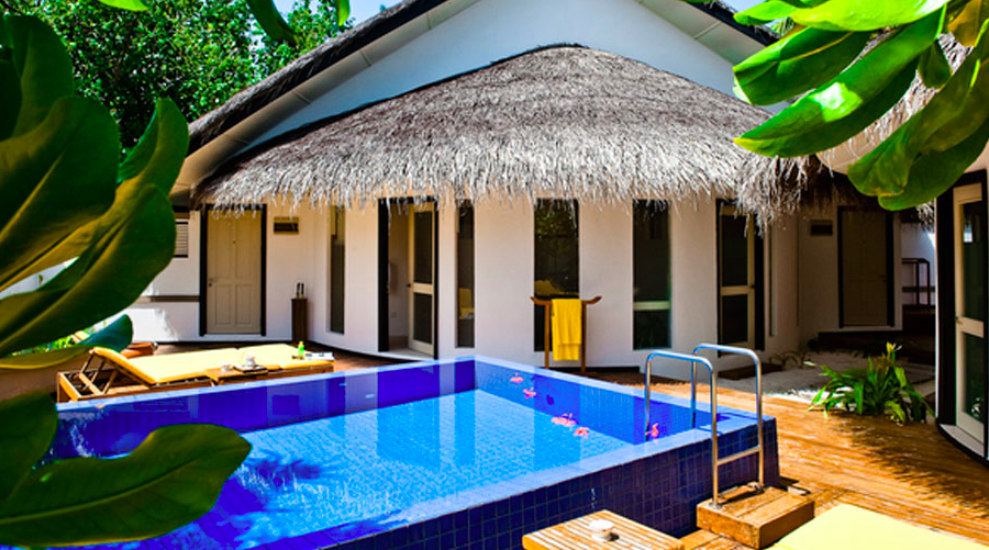 4. VELAVARU TWO-BEDROOM POOL VILLA ห้องนี้มีขนาด 323 ตร.ม. ซึ่งประกอบด้วยวิลล่า 2 หลังที่จะมีห้องน้ำในตัว ที่หลังแรกจะเป็นห้องที่มีเตียง master bed และอีกหลังจะเป็น living room ที่สามารถเปลี่ยนเป็นห้องนอนได้ วิลล่าทั้ง 2 หลังจะใช้สวน, สระว่ายน้ำและศาลาพักผ่อนร่วมกัน ห้องนี้จึงเหมาะที่จะพัก 2 ผู้ใหญ่ +3 เด็ก หรือ จะเป็น 3 ผู้ใหญ่ + 2 เด็กก็ได้เหมือนกัน
