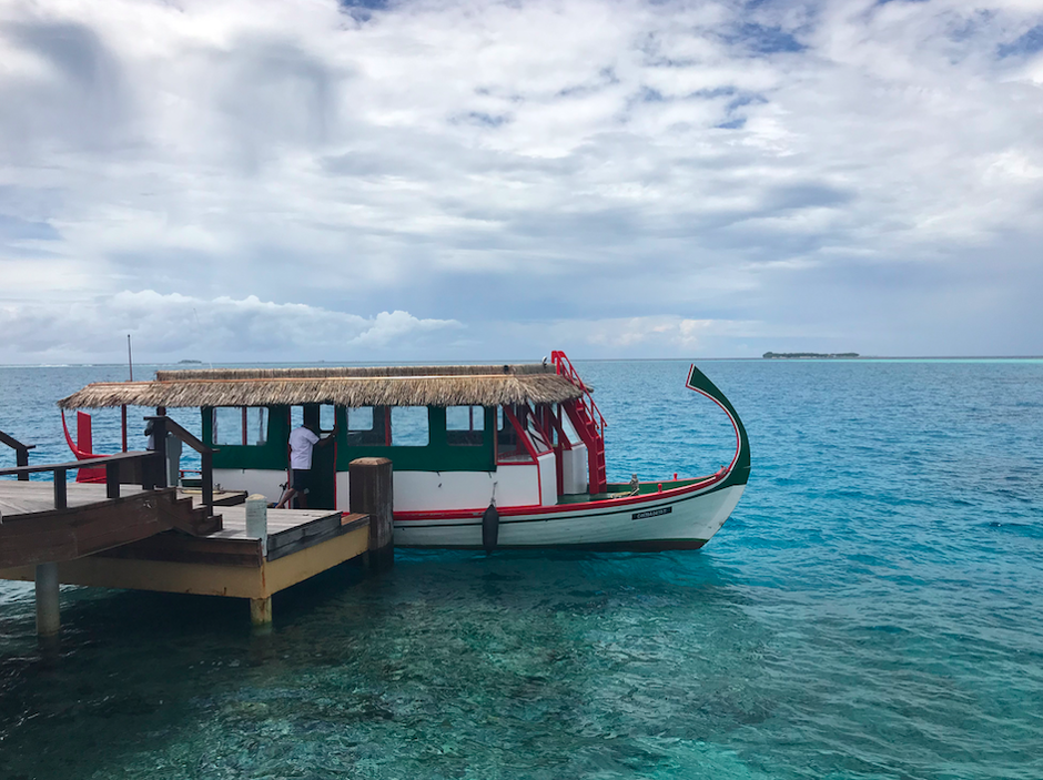 สำหรับขากลับมายังมาเล่ ทางรีสอร์ท ANGSANA VELAVARU MALDIVES แนะนำให้เดินทางกลับด้วย Domestic plane เพราะว่าจะได้ลองบริการของสายการบินใหม่ในตอนนั้น เมื่อ check out เรียบร้อยแล้ว ทีมงานก็ทำการลากับทีมงานของรีสอร์ทที่น่ารักมากๆ ตลอดทั้ง 3 วันที่ได้มีโอกาสเข้าพักที่ ANGSANA VELAVARU MALDIVES ทางรีสอร์ทได้เตรียมเรือ speedboat ที่จะนั่งไปยังสนามบินท้องถิ่น DHAALU AIRPORT ใช้เวลาประมาณ 40 นาที เมื่อไปถึงเจ้าหน้าที่จะพาขึ้นรถไปยังที่สนามบินซึ่งอยู่ไม่ไกล เมื่อถึง terminal ก็สามารถไป check in ที่เคาน์เตอร์และนั่งรอ สำหรับกระเป๋าเดินทางใบโหลดจะต้องไม่หนักเกิน 20 กิโลกรัมต่อท่าน และกระเป๋า carry on จะหนักไม่เกิน 5 กิโลกรัมต่อท่าน เมื่อ check in เสร็จแล้ว จะได้รับ boarding pass ซึ่งจะแจ้งเวลาและ Gate ที่จะขึ้นเครื่อง เมื่อใกล้เวลาเดินทาง ก็จะเข้าไปนั่งรอตรวจ boarding pass เพื่อขึ้นเครื่องบินต่อไป ซึ่งทาง ANGSANA VELAVARU MALDIVES มีสัญญากับทางสายการบินในประเทศใหม่ล่าสุดชื่อ Manta Airline ค่ะ การเดินทางกลับไปยังสนามบินมาเล่ จะใช้เวลาในการบินประมาณ 30 นาที เมื่อ landing ที่ terminal ภายในประเทศ ก็จะเดินลงเพื่อเข้ามารับกระเป๋าต่อไป เมื่อเสร็จแล้ว ก็เดินทางออกมาเพียง 2 นาทีก็จะถึง International Terminal