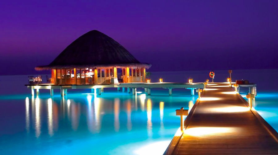 4. FUNA CLUB LOUNGE ห้องอาหารนี้ตั้งอยู่กลางน้ำที่มีทางเดินจากเกาะหลักนำไป เป็นห้องอาหารขนาดเล็กจึงควรจะจองล่วงหน้า ด้วยลักษณะของห้องอาหารที่เป็นเหมือนวิลล่ากลางน้ำ จึงเหมาะกับการรับประทานอาหารแบบโรแมนติคช่วงค่ำ เพราะเป็นจุดที่เหมาะสำหรับการนั่งชมพระอาทิตย์ตก ห้องอาหารเปิดให้บริการตั้งแต่ 18:30 – 22:00 น. อาหารที่ให้บริการส่วนใหญ่จะเป็นอาหาร seafood ค่ะ