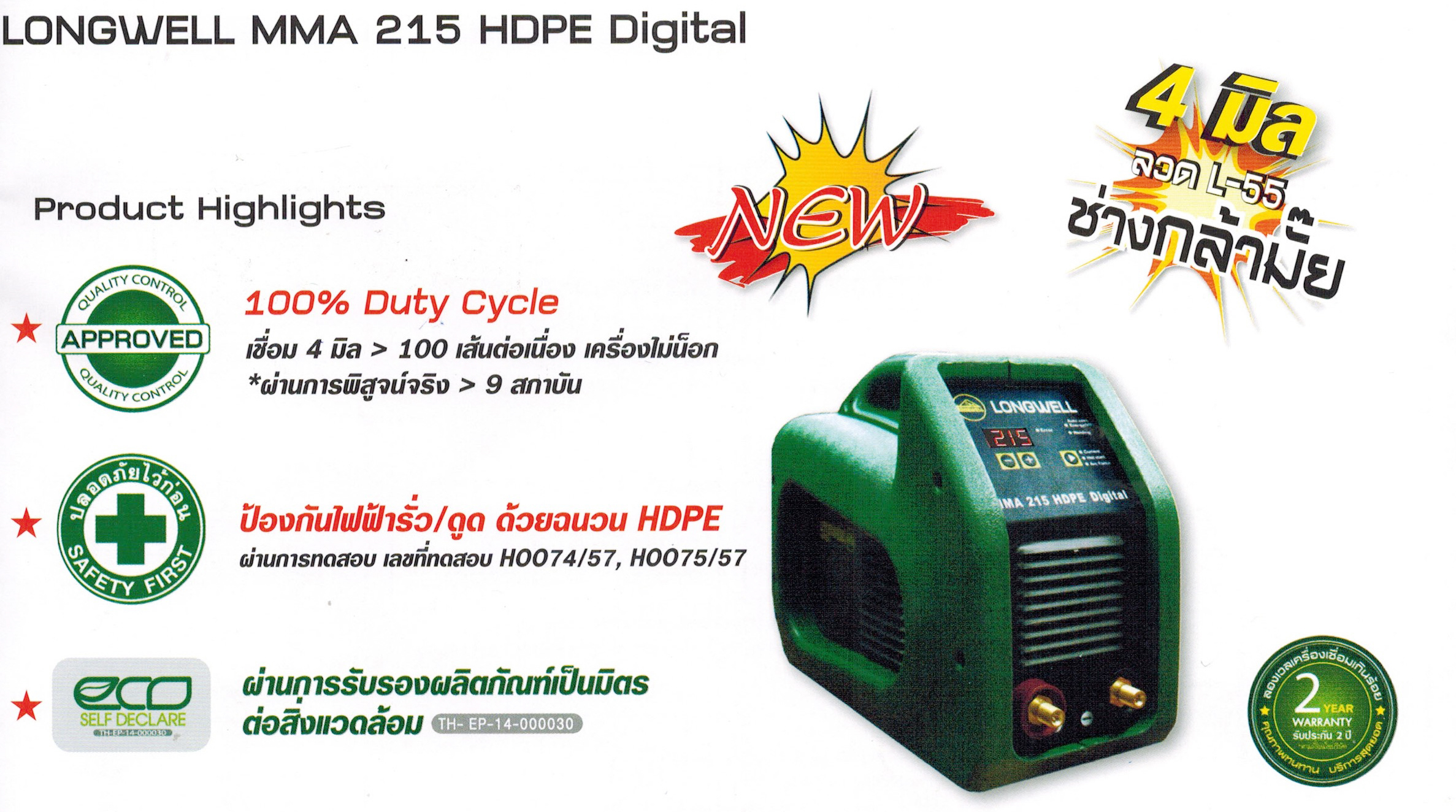 - Longwell ลองเวล ประสิทธิภาพสูง เชื่อมได้นานกว่า Duty Cycle 100%