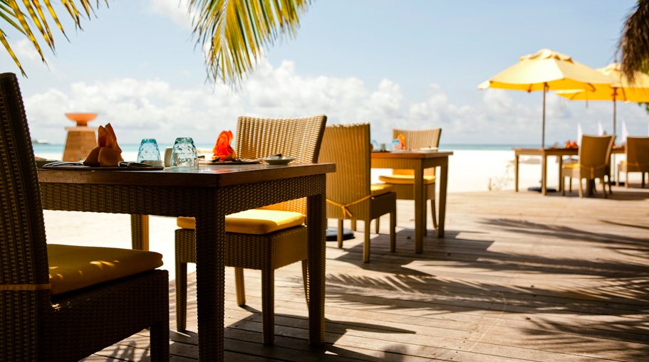 1. KAANI RESTAURANT เป็นห้องอาหารที่ตั้งอยู่บนเกาะหลัก พื้นของห้องอาหารจะเป็นทรายให้ได้สัมผัศธรรมชาติ มีพื้นที่ทั้ง indoor และ outdoor ให้บริการอาหาร International เปิดให้บริการทั้งมื้อเช้า มื้อกลางวันและมื้อค่ำ เริ่มเปิดให้บริการตั้งแต่ 07:30 – 21:30 น. ของทุกวันค่ะ
