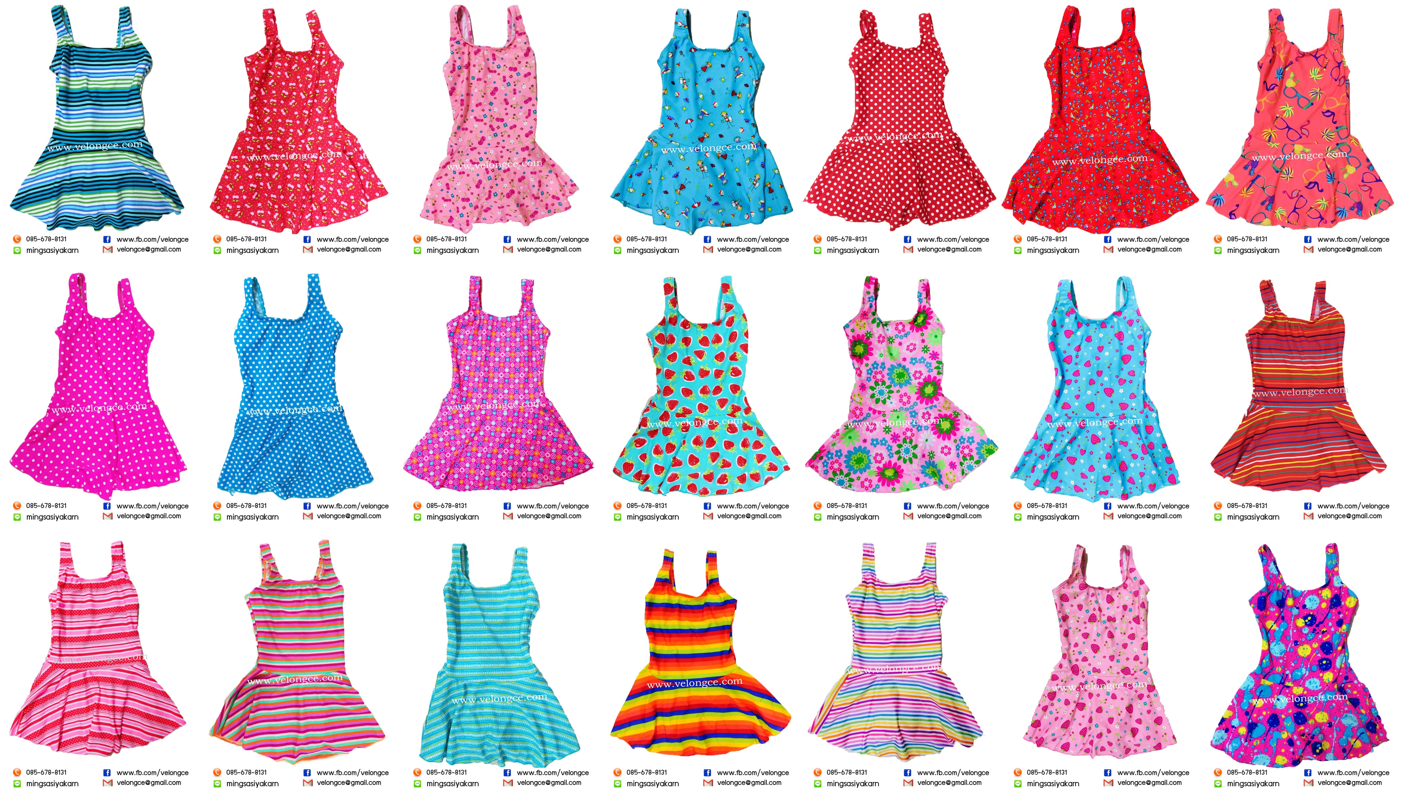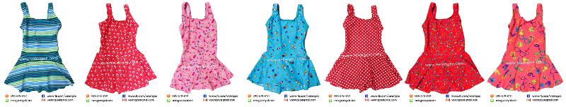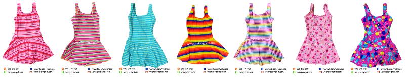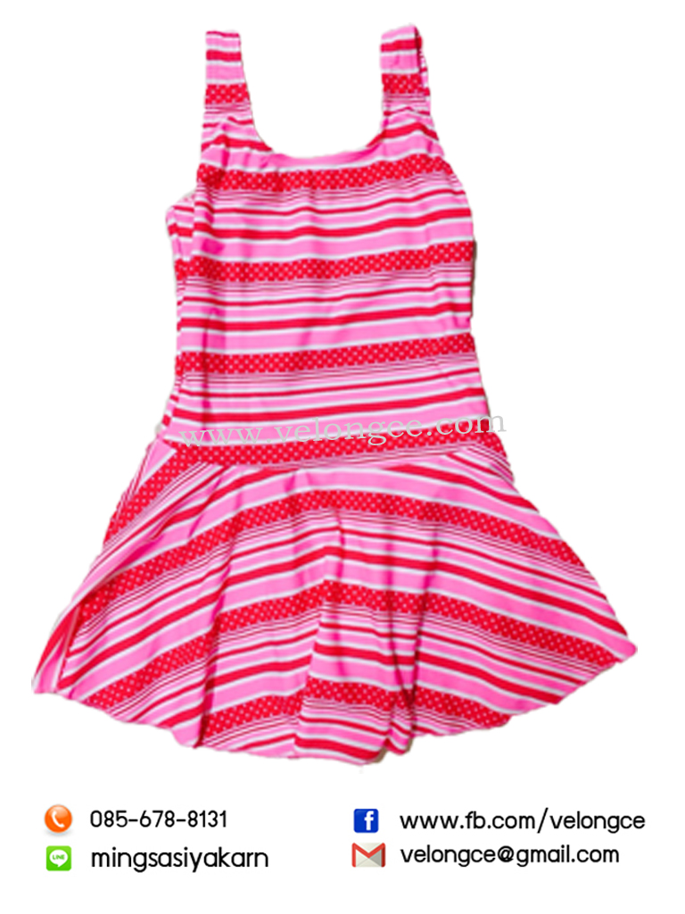 ชุดว่ายน้ำเด็กชิ้นเดียวลายทั้งตัวเสื้อกล้าม กระโปรง ลายสดใสน่ารัก Size 10-12-14-16-18-20-22