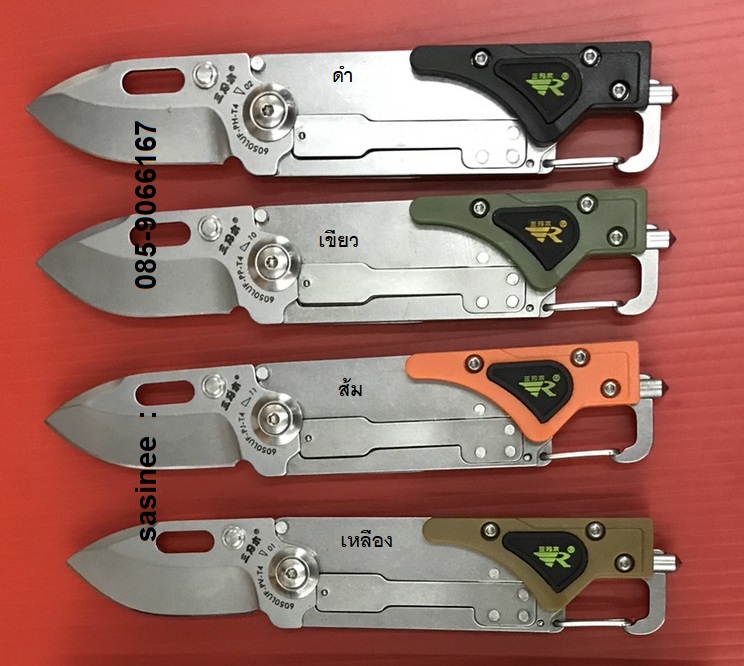 - Multi Function: Phillips Screwdriver, Belt Cutting,4#, 6# ,8#, 10# Spanner, Chisel/Scraper, Wire Stripper, Blade, LED Flashlight, Clipping Carabiner, Bottle Opener, Glass Breaker.