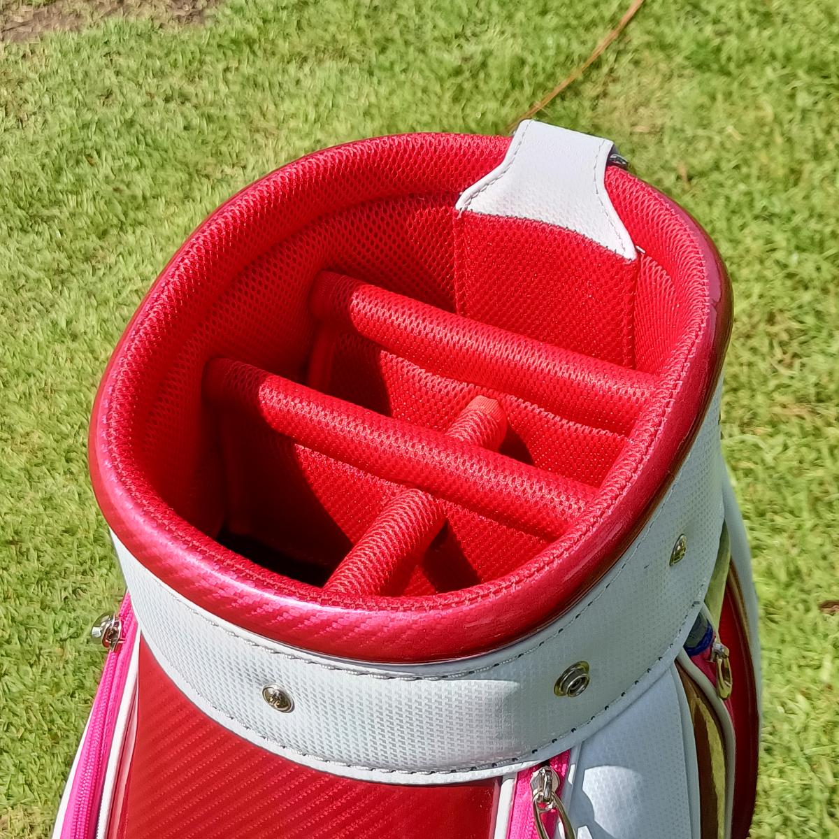 EXCEED LOGO GOLF BAG PU LADY ขนาดใหญ่ 8.5 นิ้ว แบรนด์ EXCEED ถุงกอล์ฟ EXCEED ■ Material: Synthetic leather (PU processing) ■ Size: 8.5 type 47 inch compatible ■ Mouth frame: 5 divisions ■ Weight: 2.7 kg