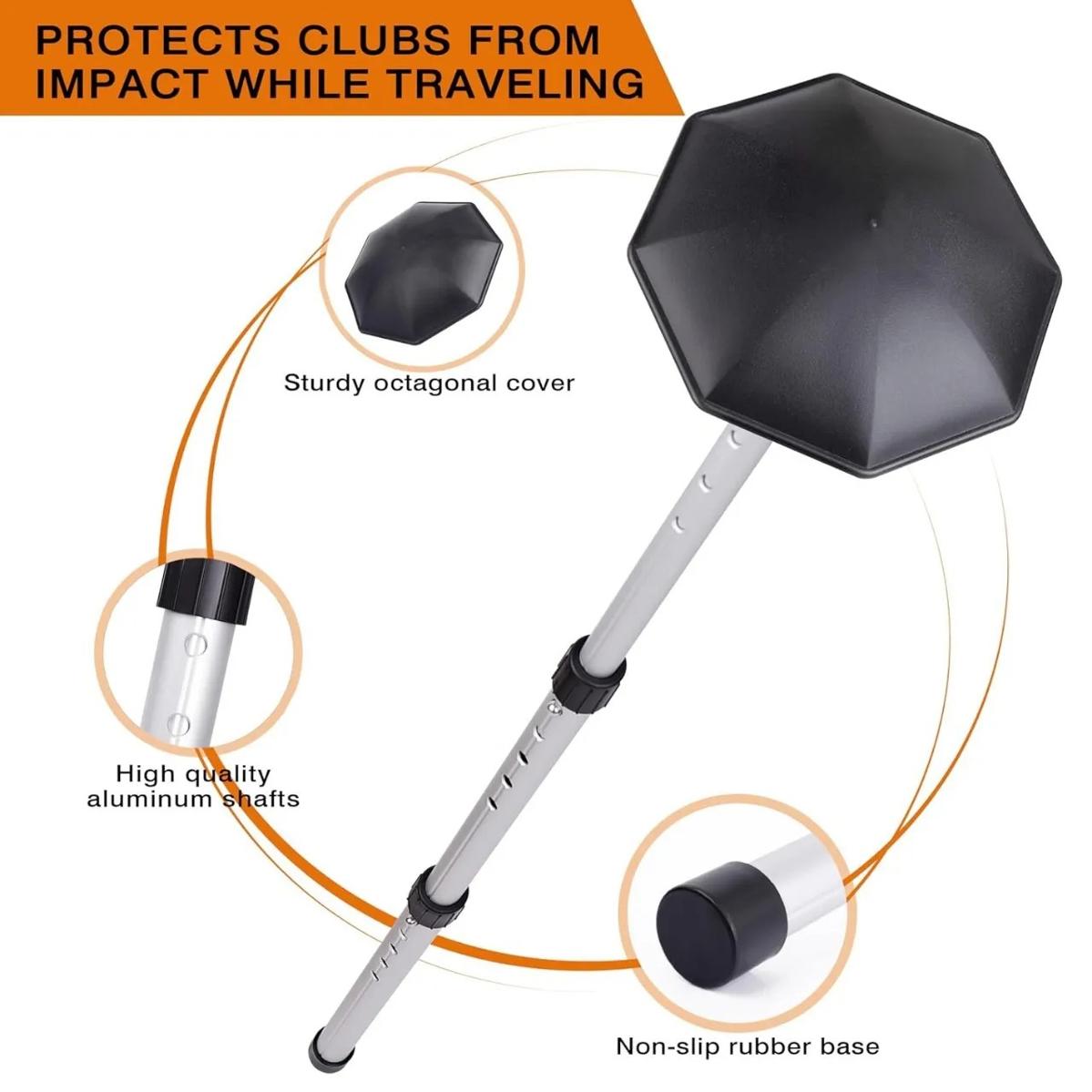 วัสดุ: ส่วนหัวครอบของแท่งค้ำถุงกอล์ฟนี้ทำจากวัสดุพลาสติก ABS ส่วนแท่งค้ำทำจากวัสดุอะลูมิเนียมอัลลอย ช่วยให้ทนต่อการงอและใช้งานได้ยาวนาน