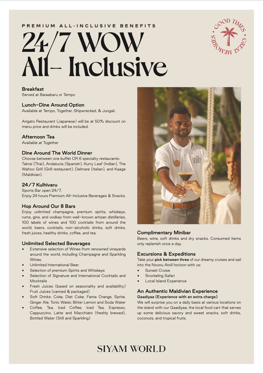 TRAVELING PERIOD: 1 พ.ย. – 22 ธ.ค. 2568 แพคเกจ WOW! INCLUSIVE PLAN + TRANSFER SEAPLANE