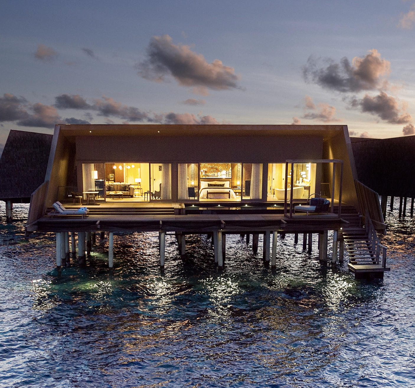 รีสอร์ทหรูระดับ 5 ดาวในเครือ Marriott ที่มีสไตล์เป็นของตัวเอง รอบๆรีสอร์ทมีแนวปะการัง และมี Butler ดูแลตลอดการเข้าพัก ใช้ seaplane ในการ Transfer