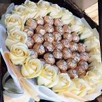 ช่อเฟอเรโร่ 30 ลูก ดอกุหลาบปนะดิษฐ์สีครีมล้อมรอบกระดาษสามารถเปลี่ยนสีได้ค่ะ