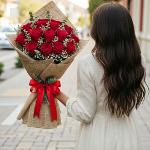 ช่อดอกกุหลาบแดง 15 ดอก ห่อด้วยป่านธรรมชาติ