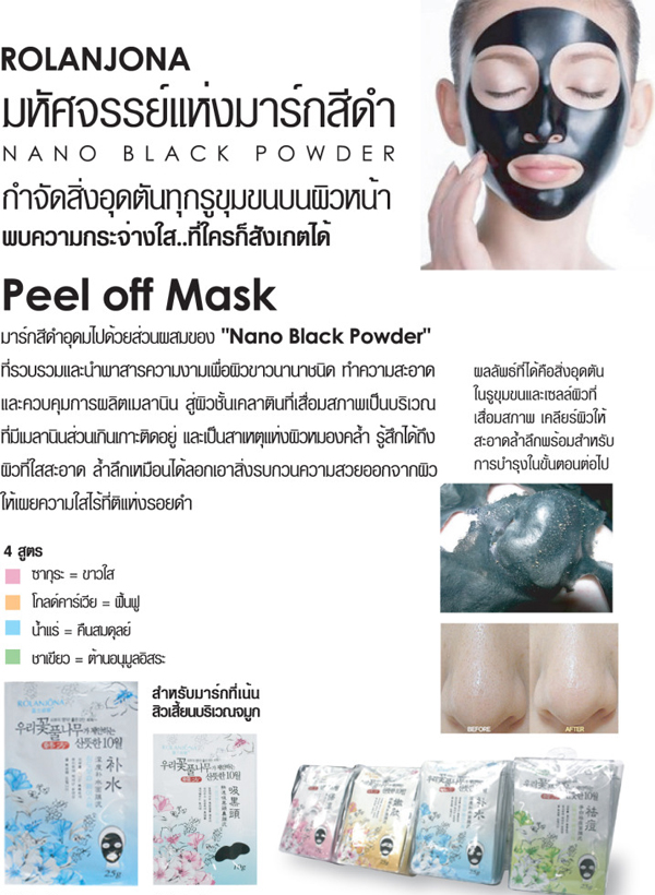 มาร์กสีดำอุดมไปด้วยส่วนผสมของ "Nano Black Powder" ที่รวบรวมและนำพาสารความงามเพื่อผิวขาวนานาชนิด ทำความสะอาดและควบคุมการผลิตเมลานิน
