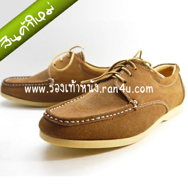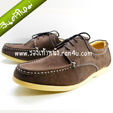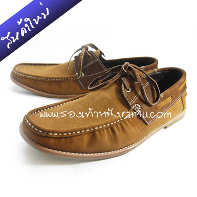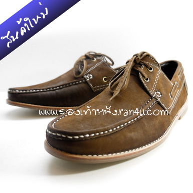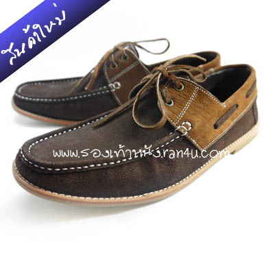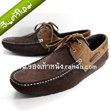 C017 รองเท้า boat shoes สีน้ำตาลหนังเรียบพื้นไม้