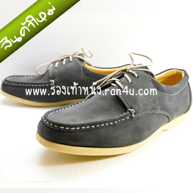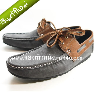 J201 รองเท้า boat shoes สีเทาหนังน้ำตาล