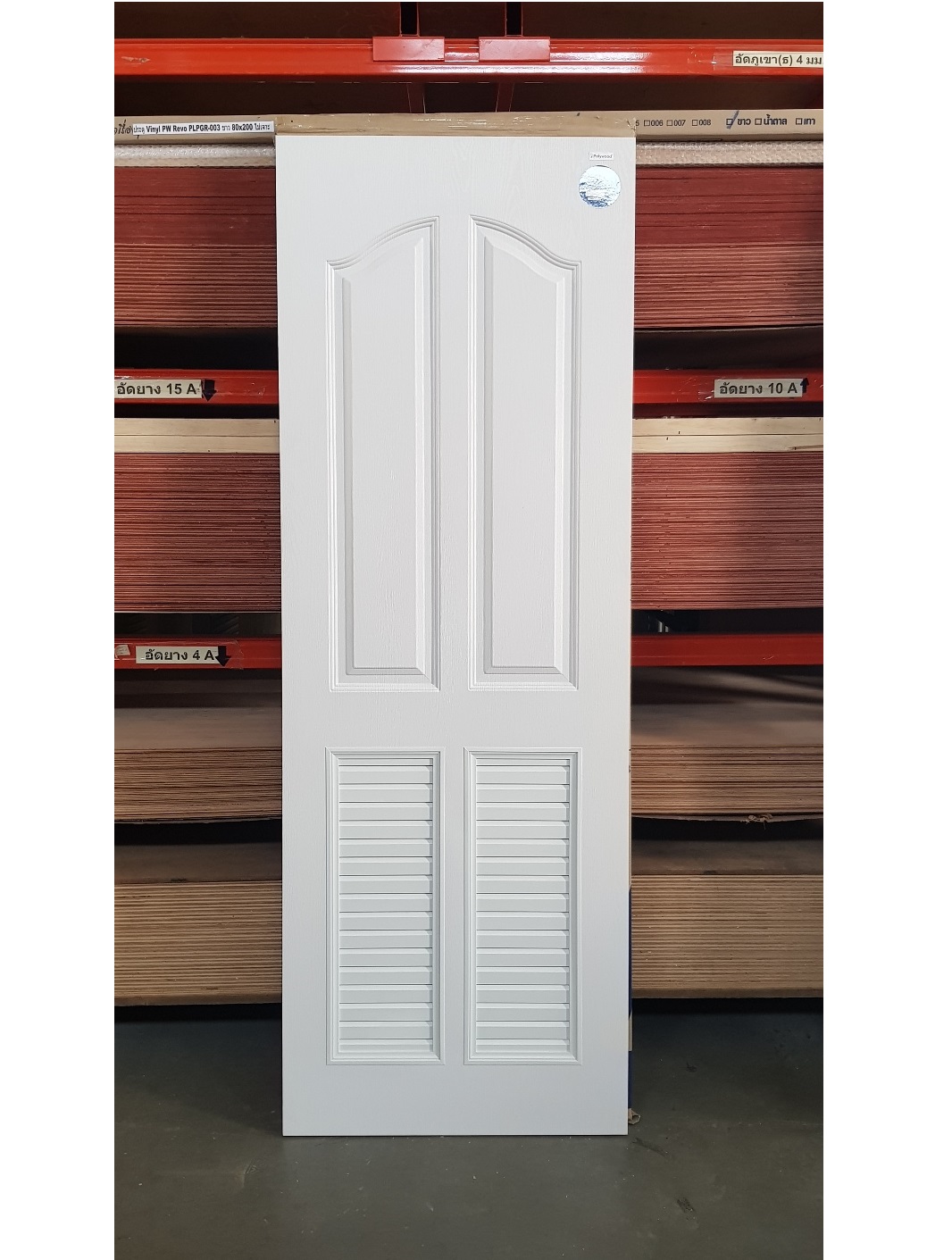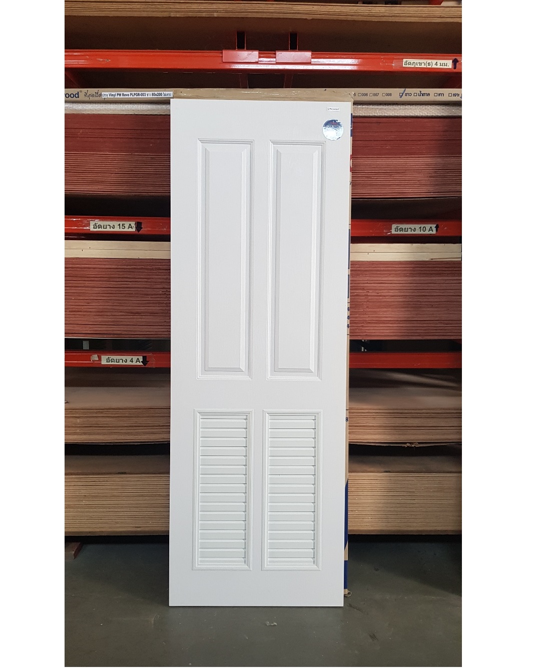 ประตูupvc(ไวนิล) ขนาด 80x200 เกล็ดล่าง PLR006ยี่ห้อโพลีวู้ด สีขาว ใช้ภายนอก ทนแดดทนฝน กันน้ำ100%