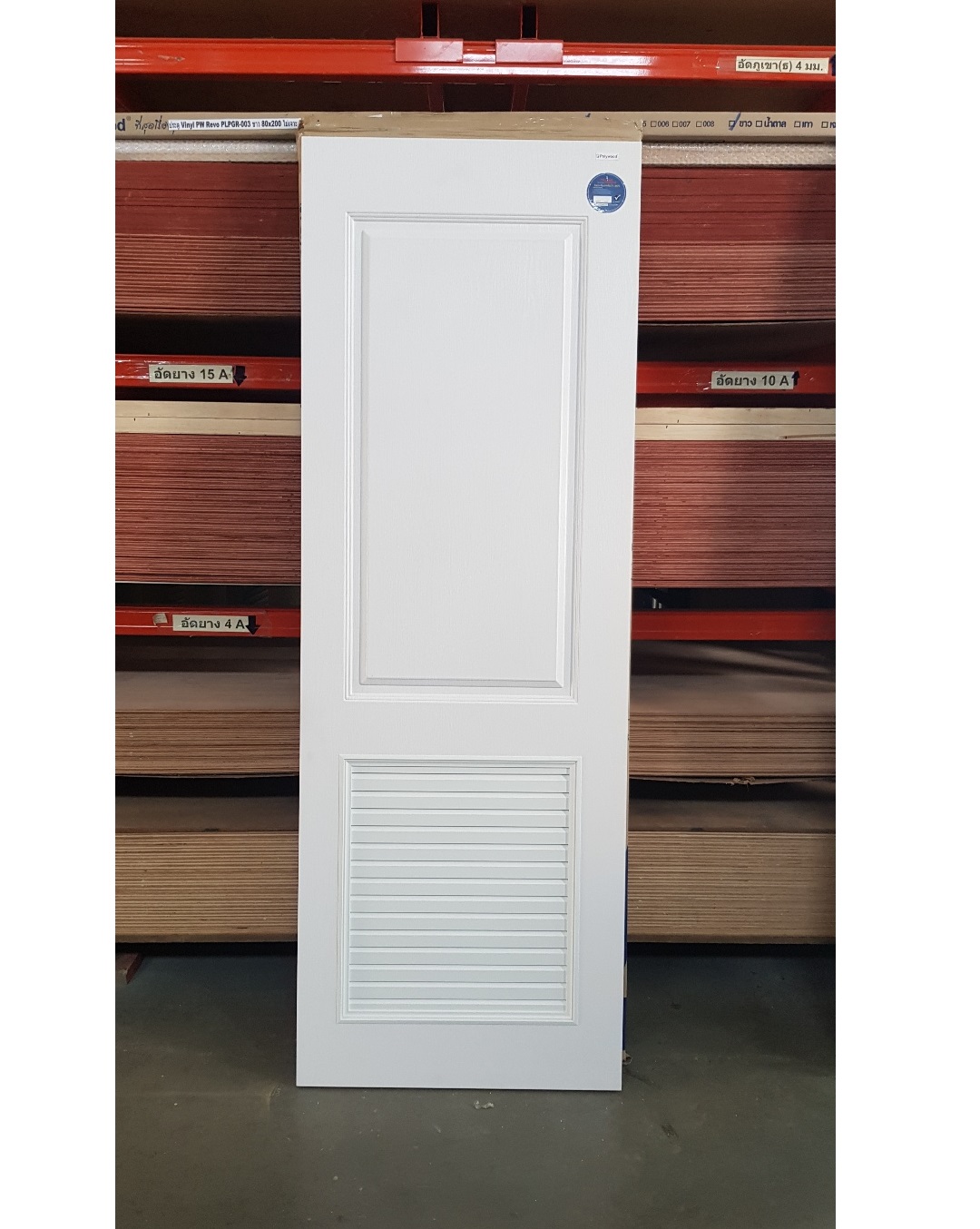 ประตูupvc(ไวนิล) ขนาด 80x200 เกล็ดล่าง PLR001ยี่ห้อโพลีวู้ด สีขาว ใช้ภายนอก ทนแดดทนฝน กันน้ำ100%