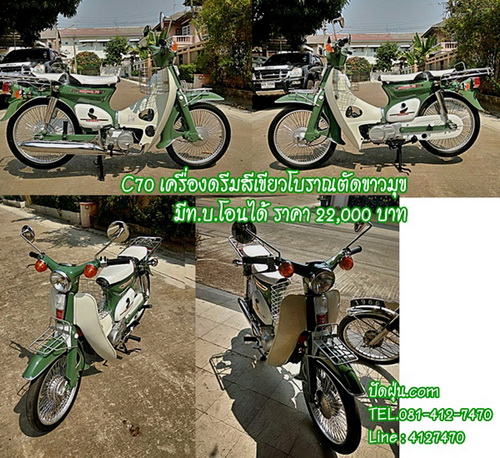 C70 เครื่องดรีมสีเขียวโบราณตัดขาวมุข ระบบ 4 เกียร์มีท.บ.โอนได้ ราคา 22,000 บาท