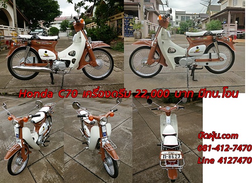 C70 เครื่องดรีม สีน้ำตาลทองตัดขาวมุข ระบบ 4 เกียร์ไ มีท.บ.โอนได้ ราคา 22,000 บาท