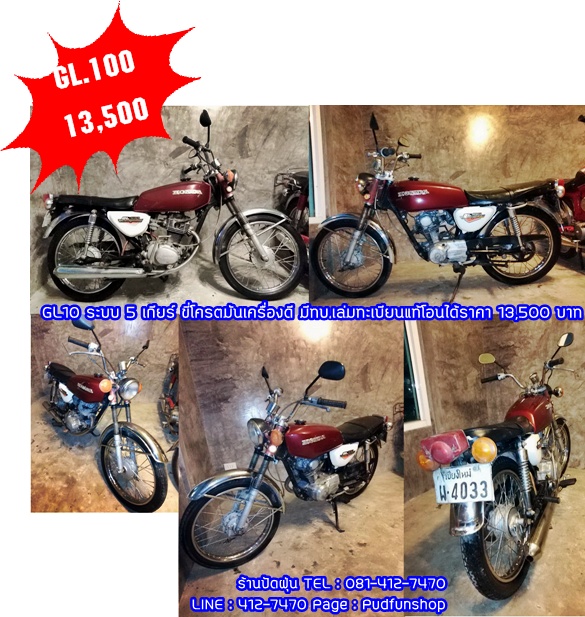 GL.100 ระบบ 5 เกียร์ ขี่โครตมันเครื่องดี สภาพตามรูปเลยครับ เล่มทะเบียนแท้โอนได้ ราคา 13,500 บาท
