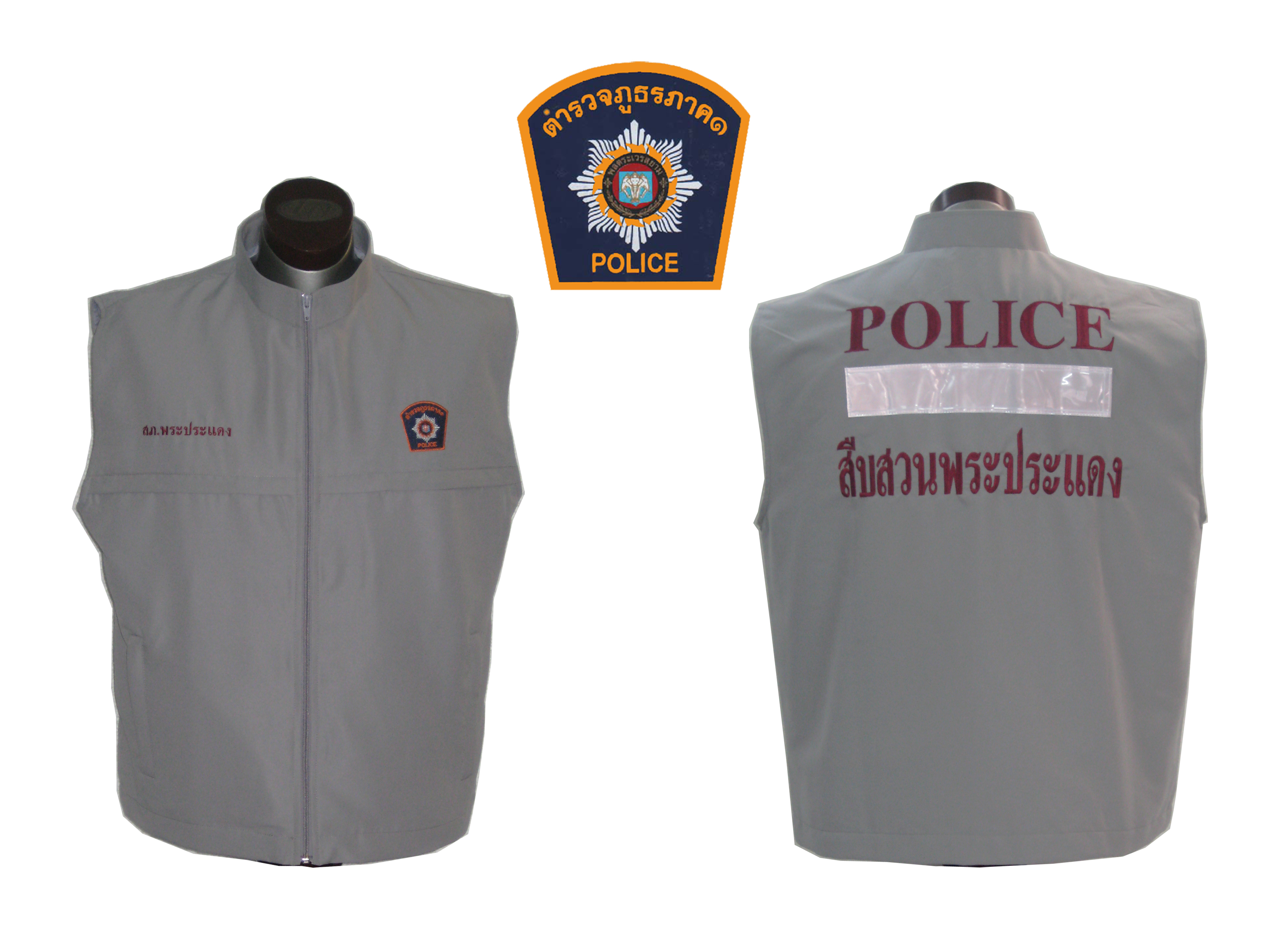 ต้องการตัดเสื้อ แบบนี้หรือแบบมีปรก จำนวน 100 ตัว ด้านหลังปัก H.W.P.D. ด้านหน้าซ้ายอามร์ตำรวจทางหลวง และด้านหน้าขวา ปัก 11 เป็นตัวอักษรและตำเลขเป็นสีเงิน